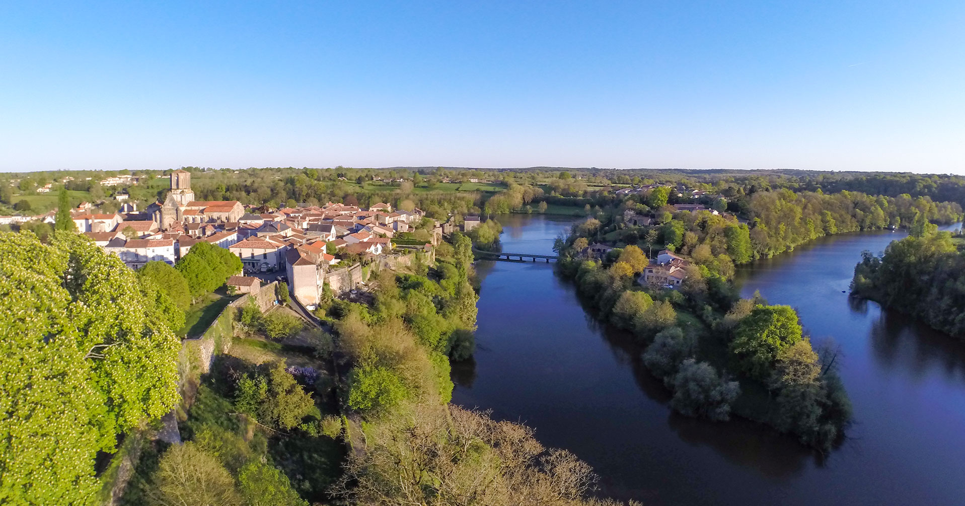 Vouvant, enserré par les capricieux méandres de la Vendée, aux abords de la forêt de Mervent, tout près du grand barrage et du lac du même nom, c’est aussi et surtout un village de légendes de fées, de prouesses de chevaliers, un chef d’œuvre de foi.